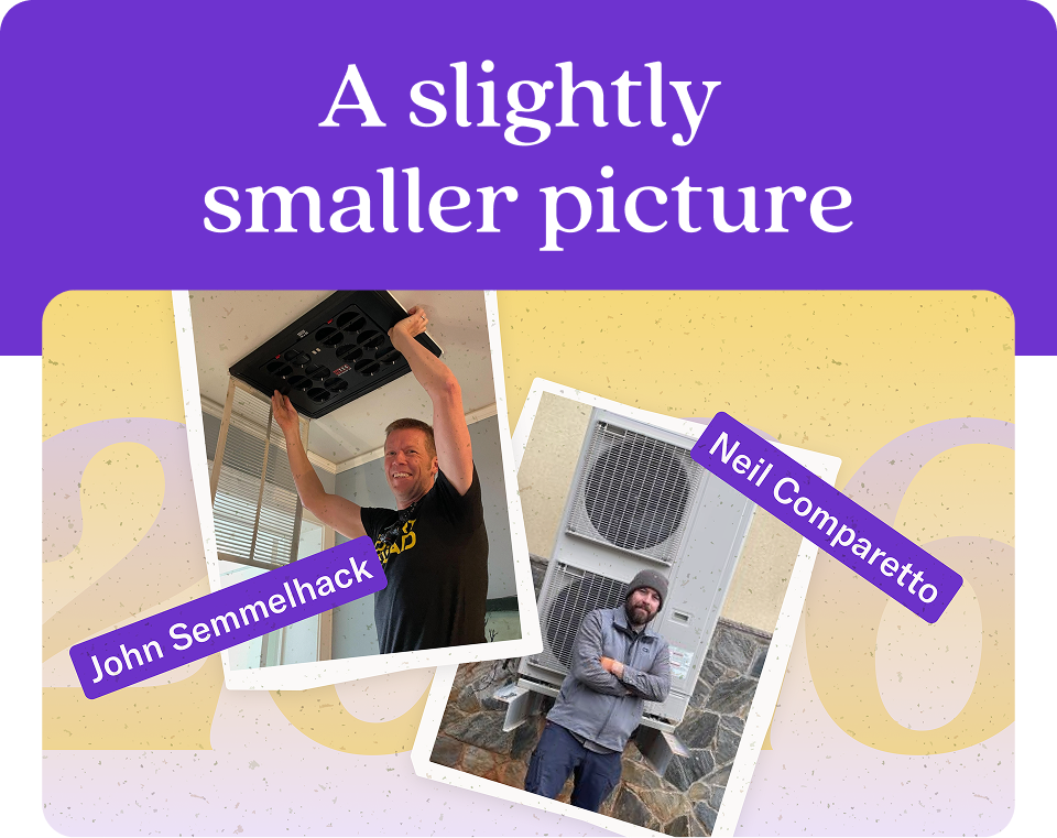Zooming in on one corner of our vision board, the names John Semmelhack and Neil Comparetto come into focus. John and Neil are co-owners of The Comfort Squad, a Virginia-based contractor group committed to all-electric appliance installations. In the fall of 2025, we partnered with them to launch a heat pump installation program in their community.